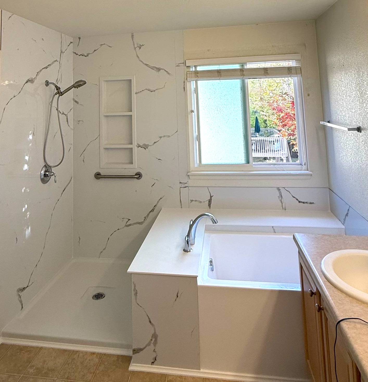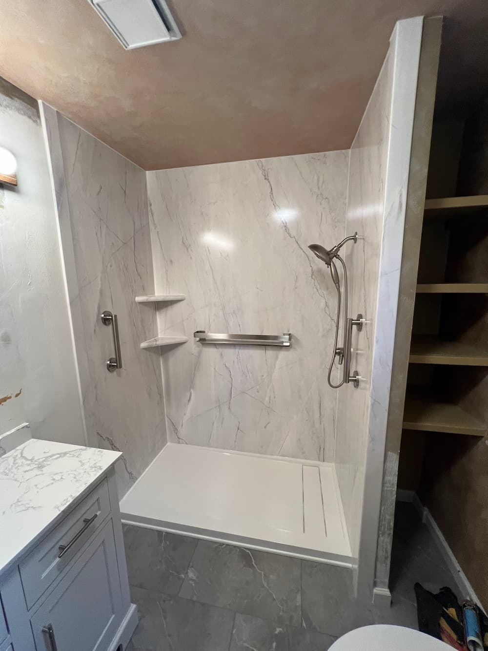 A well-designed shower can completely change the look and feel of a bathroom. Whether it’s a sleek, modern walk-in or a practical tub-to-shower conversion, there are plenty of ways to customize your space. These photos showcase real shower remodels in Colorado homes, featuring different layouts, types of materials, and accessibility features. See more information on our shower remodels.