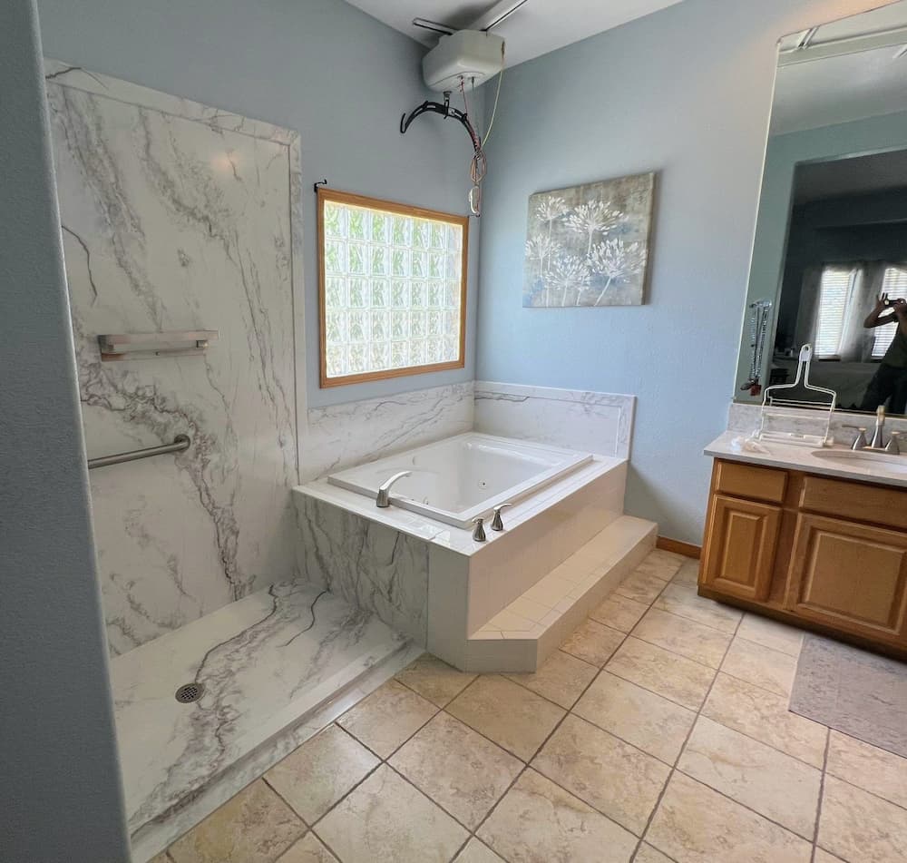 A full remodel with MyBath Colorado can include a new shower or bathtub, along with waterproof flooring, upgraded vanities, and new lighting. We don’t do drywall and paint, though we will recommend trusted contractors who specialize in those finishing touches. Our full remodels reflect beautiful and functional updates that make your space more efficient and enjoyable.